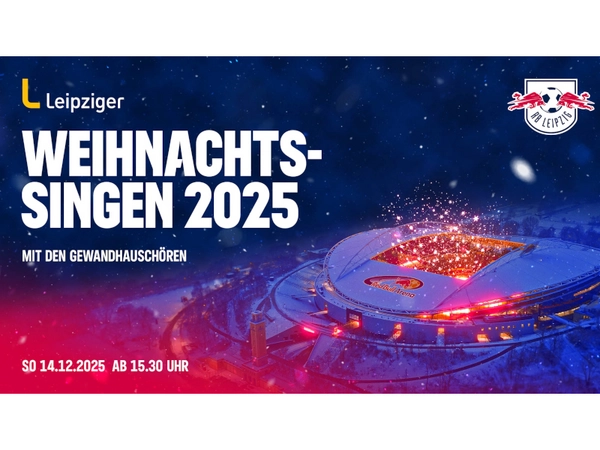 Am 14. Dezember 2025 ist es wieder soweit: Die Red Bull Arena Leipzig verwandelt sich in ein weihnachtliches Lichtermeer und lädt zur 3. Auflage des Leipziger Weihnachtssingens ein! Auch in diesem Jahr sorgen die weltberühmten Gewandhaus-Chöre für den musikalischen Rahmen und geben gemeinsam mit dem Publikum die schönsten Weihnachtslieder zum Besten. Eine beeindruckende Drohenshow, emotionale Momente und neue Überraschungen machen den Abend erneut zu einem ganz besonderen Erlebnis.