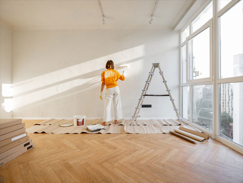 Beim Verlegen neuer Böden muss der Untergrund sauber, eben und trocken sein. Verwenden Sie bei Bedarf eine Ausgleichsmasse. Beim Streichen der Wände tragen Sie zunächst eine Grundierung auf, um ein gleichmäßiges Finish zu erzielen.